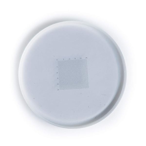 - Net Shaped Micrometer Measuring Ruler Slides for 19mm Microscope Lens provides reliable performance and quality- C5 type 0.5 mm net eyepiece ruler, Diameter 19mm- 0.5 mm net shaped eyepiece ruler, the area of 5 * 5mm2 scale, each divided into 10 equal parts, each small square glass 0.25mm2, diameter of 19mm- This calibration slide in box which with sponge, very luxury and delicate- Great for Calibrating Your Microscope or Microscope Camera Reticles