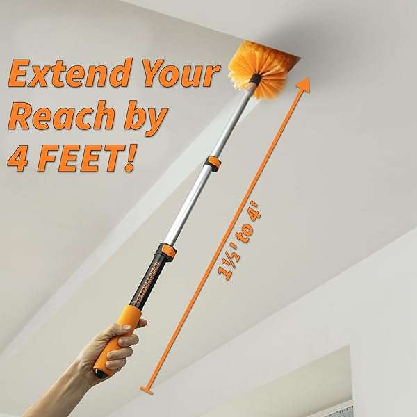 1.5-4 ft Cobweb Duster with Extension Pole - Lightweight Spider Web Cleaner for Indoor & Outdoor Use