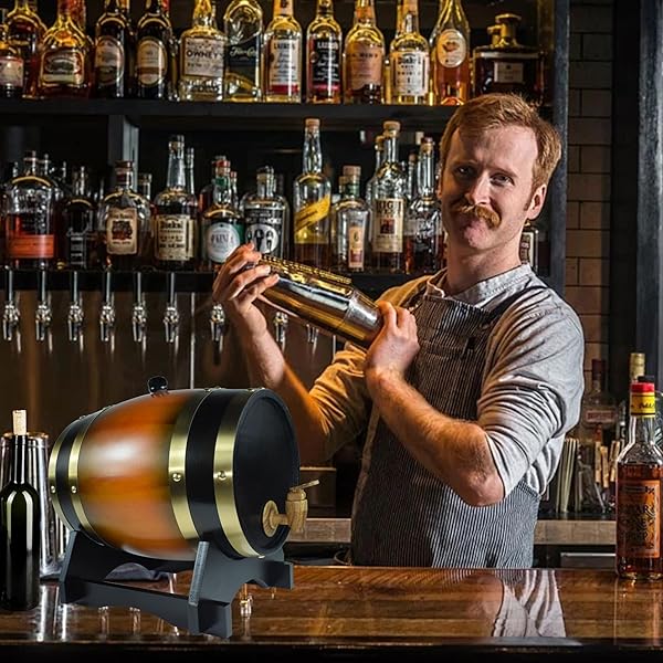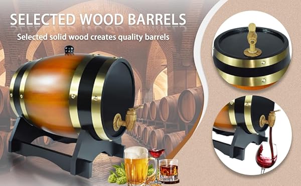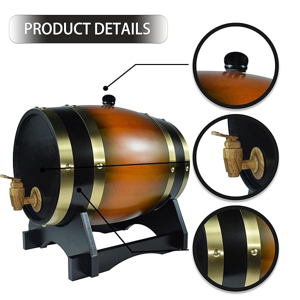 - 1.5L Whiskey Barrel Dispenser Oak Aging Barrels Home Whiskey Barrel Decanter for Wine, Spirits, Beer, and Liquor (Brown) offers reliable performance and quality- SMALL BUT STRIKING. This Whiskey Barrel packs a lot of class into a small package. The tabletop-sized wood barrel strikes an impressive silhouette with its smooth unfinished wood surface and faux-copper metal hardware