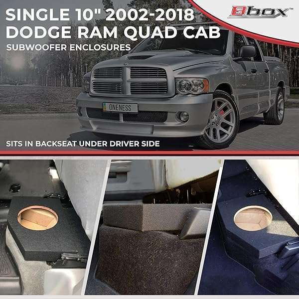 - Bbox Single 10 Inch Subwoofer Sealed Enclosure - Fits 2002-2018 Dodge Ram Quad Cab - Carpeted Car Subwoofer Boxes & Enclosures - Subwoofer Box Improves Audio Quality, Sound and Bass - Charcoal prov...- DUAL 10 INCH SUBWOOFER ENCLOSURE: Our Bbox 10 Inch Subwoofer Box is designed for optimum bass response and low frequency reproduction which is ideal for lower profile sound quality subwoofers. Feel...