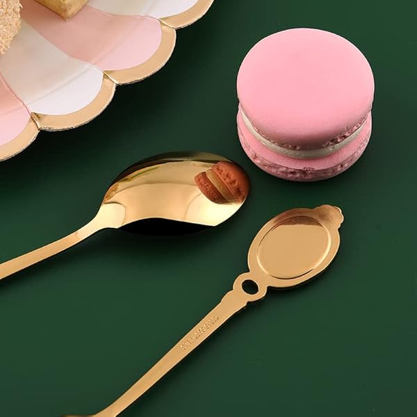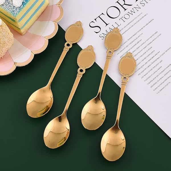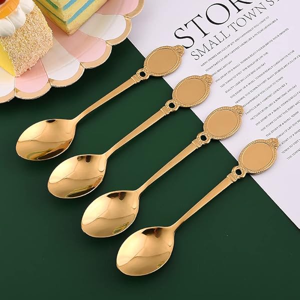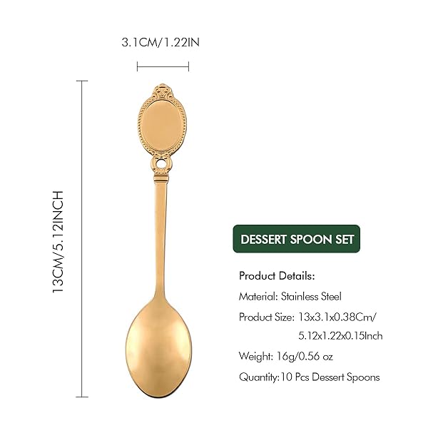 * Dessert Spoon Set, 10Pcs Stainless Steel Creative Tableware Coffee Spoon Gold Plated Mini Teaspoons Set Sugar Stirring Ice Cream Soup Mixing Antipasto Cappuccino Cake Spoons: carefully polished: our stainless steel dessert spoon set has been professionally polished and polished * Mirror polished * It not only looks beautiful and elegant * But also feels comfortable * The one-piece edge is smooth and burr-free