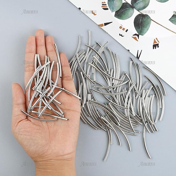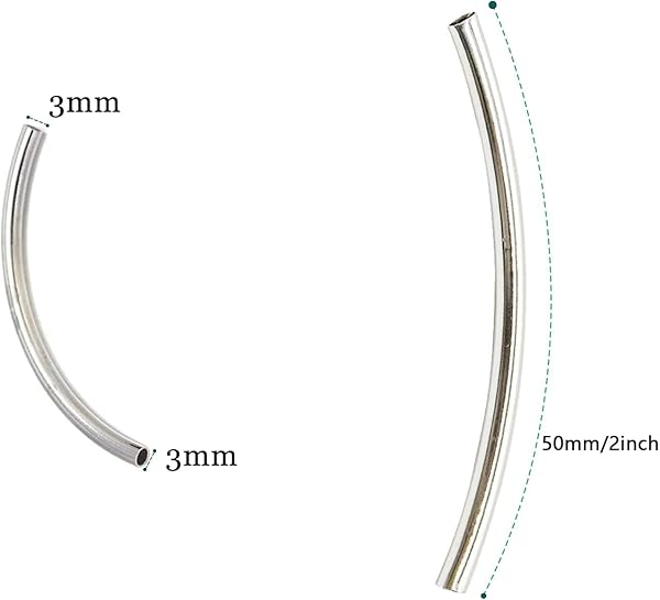 - AUEAR, 100 Pack 3 x 50mm Long Tube Beads Plated Metal Curved Noodle Spacer Bead for DIY Bracelet Necklace Jewelry Making (Silver) offers reliable performance and quality- (Product Size) 3mm x 50mm .Hole Size: 2.6mm.Note - Please Confirm The Size Before Ordering- (Material) The Silver Tube Beads Are Made of Copper, For Long - Lasting Use- (Quantity) 100 Pcs long beads for jewelry making