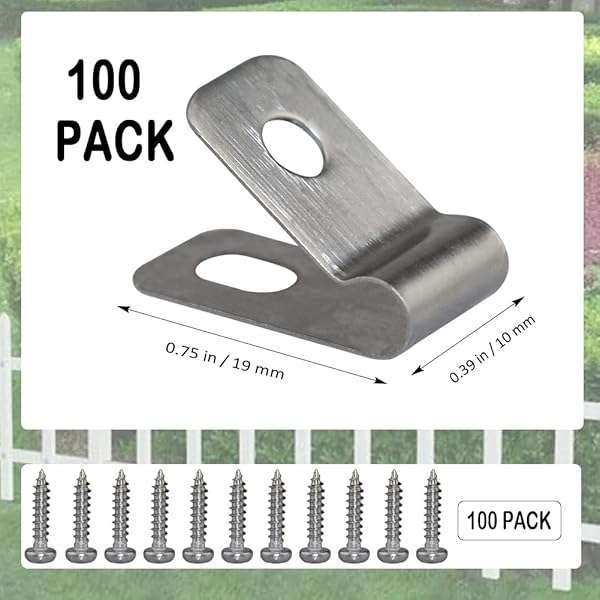 * Wire Fence Clips Metal 100 Pcs Wire Clamps Stainless Steel Fencing Mounting Clips with 100 Pcs Stainless Steel Screws for 12-16 Gauge Welded Clamps to Wood, Metal or Vinyl Railings (100 PCS): practical fence mounting clamps: these wire clamps are the practical tools and perfect for attaching wire fencing to wood * Metal or other fence posts * Which will be of great use to protect your farm * Ranch or garden from being destroyed * Premium and Durable Material: the fence wire mounting clip are