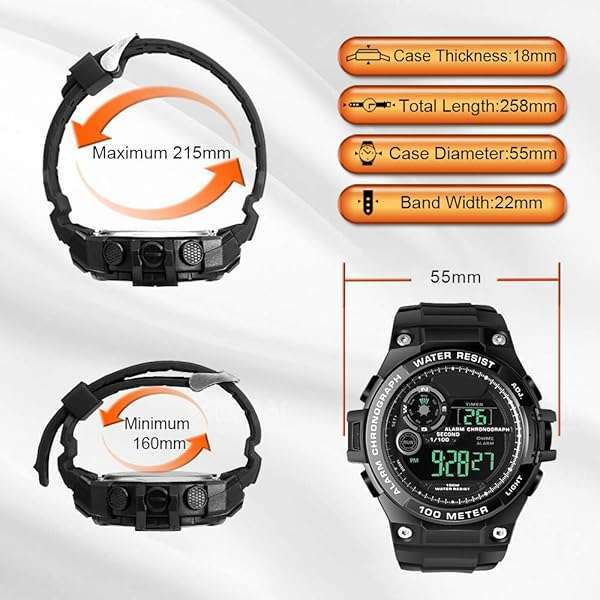 100m Waterproof Scuba Diving Watch for Men & Boys - Stopwatch, Chronograph, Alarm, Dual Time Zone, 12/24 Hour Format