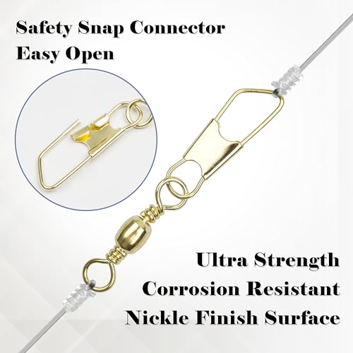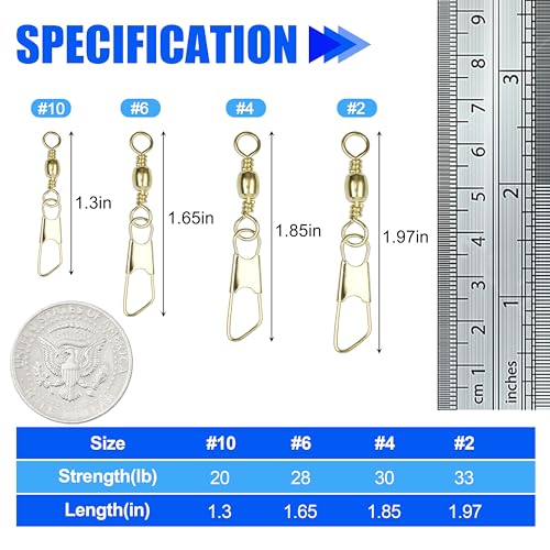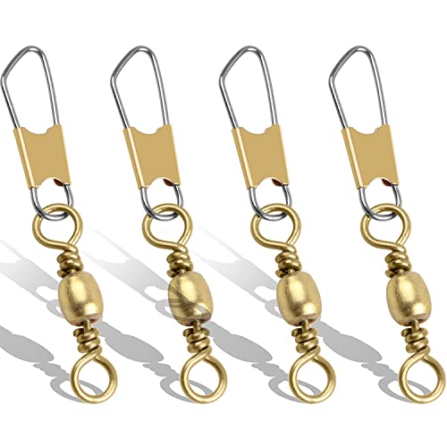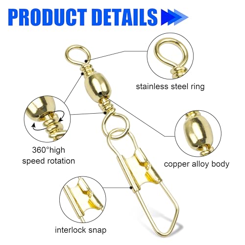 - Fishing Barrel Swivels Snaps, 100pcs Snap Swivels Fishing Tackle Leader Line Lure Connector Accessories High Strength Solid Rings for Saltwater Freshwater, Gold, 10# offers reliable performance and quality- MaterialBarrel swivel with safety snap is made of excellent metal material, the surface of the metal material is smooth, also the friction is small