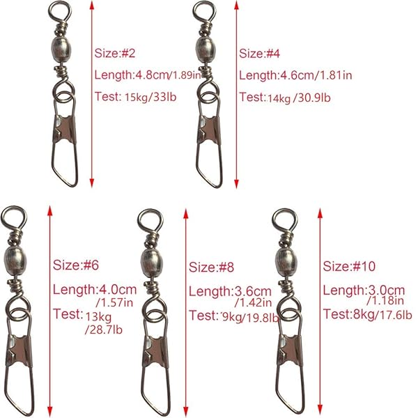 - 100pcs #2 Solid Fishing Swivel Snaps Hook Connector Barrel Bearing with Welded Rings Stainless Steel +A offers reliable performance and quality- MATERIAL: Barrel Swivel with Safty Snap Connector are Made of high quality steel and guaranteed by strict inspection and production- DESIGN: Unique design reduced water resistance and improved the sensitivity of the group. Simple design for easy operation;With high tensile strength;Barrel Swivel with Safty Snap Connector