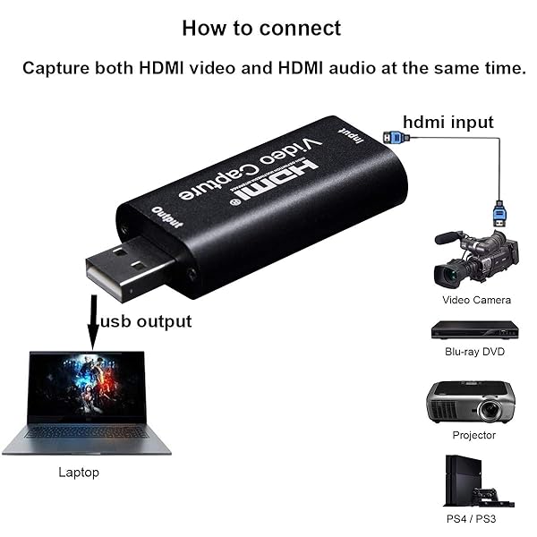 - Audio Video Capture Cards,1080p30hz HDMI to USB 2.0 Capture Recording Box Compatible with Windows Linux Mac OS System YouTube OBS VLC Amcap for PS4/ Xbox/DSLR offers reliable performance and quality- PORT 1 x HDMI(Input port) , 1 x USB 2.0 (Ouput port)