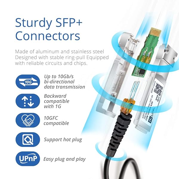 - H!Fiber SFP+ Cable, 10G SFP+ DAC, 1M(3.3ft), Passive Direct Attach Copper Twinax Cable for Cisco SFP-H10GB-CU1M, Ubiquiti UniFi UC-DAC-SFP+, Meraki, Mikrotik, Intel, Fortinet, Netgear and More prov...- 10Gb SFP+ Cable: 10G SFP+ to SFP+ DAC Twinax cable assembly support 10 Gbps data rate, 10GBASE-CU Passive, 1 meter (3.3 ft), 30 AWG; DAC Length includes 2 SFP+ connectors