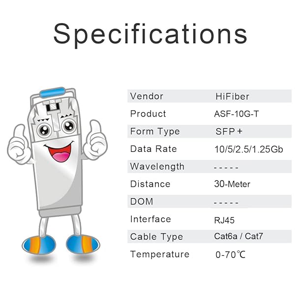 - H!Fiber 10Gb SFP+ RJ45 Transceiver, 10Gbase-T SFP+ Ethernet Module Support 10G/5G/2.5G/1.25G, Compatible with Cisco SFP-10G-T-S, Ubiquiti UF-RJ45-10G, UniFi, Meraki,MikroTik,Supermicro and More, 30...- Multi Rate SFP+: 10Gbase-T transceiver support 10Gb data rate on SFP+port, support 10Gbase-T / 5Gbase-T /2.5Gbase-T /1000Gbase-T on RJ45 port; SFF-8431 and SFF-8432 MSA Compliant, IEEE 802.3az Comp...