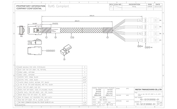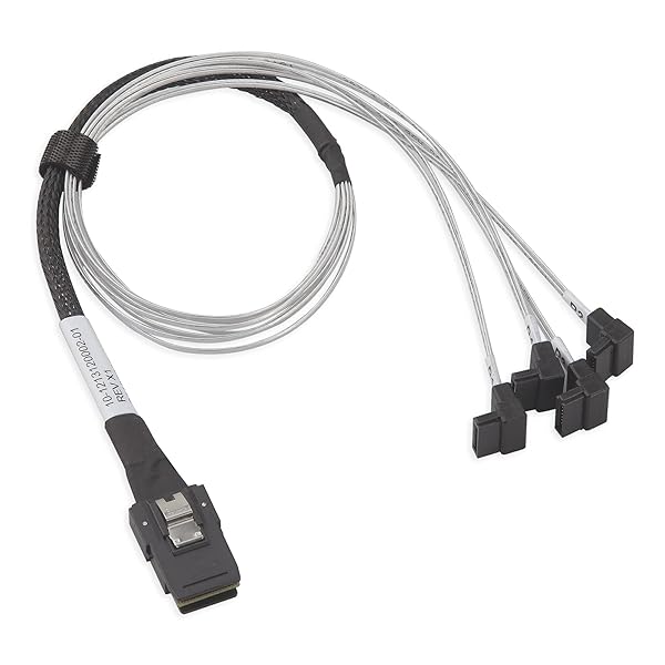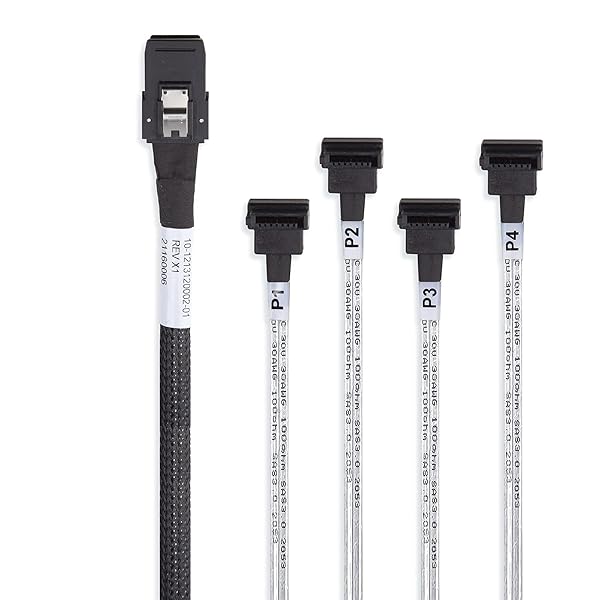 - 10Gtek MiniSAS SFF-8087 Fan-Out Cable Breakout to 4xSATA, 6Gbps High-Speed Cable for RAID Controllers, Servers & Storage Enclosures, SATA Right Angle, 0.5-m(1.6ft) offers reliable performance and quality- Internal SAS SFF-8087 to 4x SATA Cable, Straight to Right Angle, 0.5-meter(1.6ft)- AWG30 Twinaxial 8-pair high-bandwidth low-skew wire- Impedance = 100 Ohms- Up to 6Gbps data rates per channel