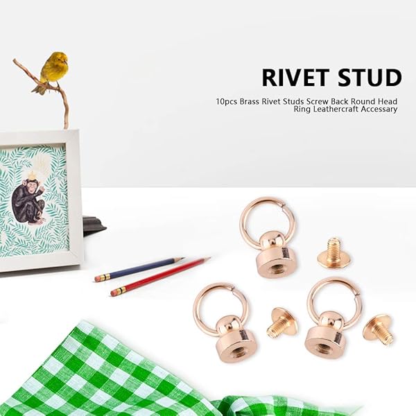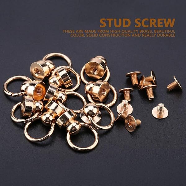- 10-Piece Brass D-Ring Rivet Studs, Round Chicago Screws with 360 Rotating Ball Post Buckles for Leathercraft and Strap Attachments offers reliable performance and quality- Function: 360 degree rotatable ball post head buttons, enough quantity to suit your different leather craft DIY ; Stud screws enhance the way the leather pieces are fastened together, allow leather projects to be adjustable