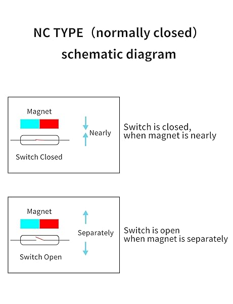 - Sonew 10pcs NC Recessed Wired Door Window Sensor Magnetic Reed Switch for Home Security Alarm System, Magneti Door Switch, Sensor offers reliable performance and quality- NORMALLY OPEN(NO): When sensor is separated from the magnet, the circuit is conductive(light on); When the switch is close to the magnet, the circuit is not conductive(light off)