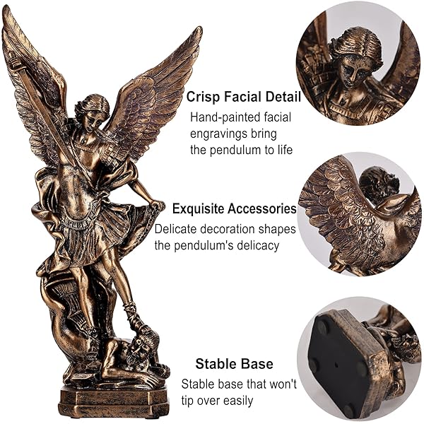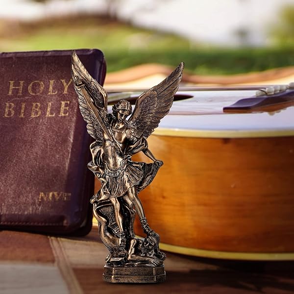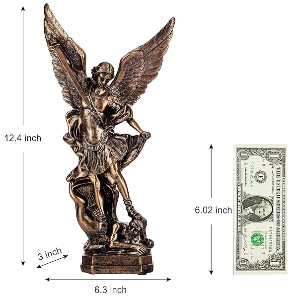 - 12.5in Bronze San Miguel Arcangel Statue, St Michael Statue, Resin Saint Archangel Michael Statues, Saint Michael defeating Satan Collection Figurines, Religious Angel Suitable for Collection or Decor with reliable performance and quality- Fine Workmanship----San Miguel Arcangel Statue is made of resin with high precision, not easy to wear and scratch, clear hand-painted face outline with realistic engraving and bronze finish gives a high quality antique appearance that is breatht