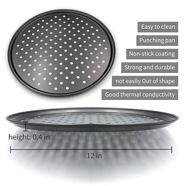 - Pizza Baking Tray, 12 Inch Round Pizza Pan With Holes for Oven, Home & Restaurant offers reliable performance and quality- Package Includes: 12.5 inch size suitable for Dishwasher, Oven and Freezer safe.32cm pizza pan- Preferred for Professionalsdurable carbon steeln Round hole design sure quality of use,Non-stick layer for easy food release and cleanup