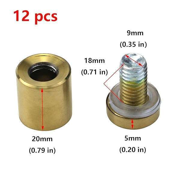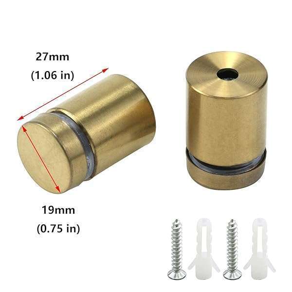 * Antrader Glass Standoff, 3/4" x 1" Nail Wall Mount Standoff Holder Screw, Stainless Steel Advertise Fixing Pin Sign Mounting Hardware, 12-Pack, Polished Gold: standoff bolt with 19mm/0.75-inch in diameter and 25mm/1-inch length(length not including washer) * Elevates signage 0.8-inch off the wall * Constructed of High quality stainless steel,ensuring durability and dependability * Modern-styled design eliminates the need for a frame * Easy to install and heavy duty