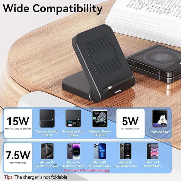 - Geyo Wireless Charger for Samsung Galaxy Z Flip, 15W Fast Wireless Charging Stand, Compatible with Z Flip 7/6/5/4, for Motorola Razr/Razr+/Razr Ultra 2025, Non-Fold (QC3.0 Adapter Included) Black p...- Wide CompatibilityGalaxy Z Flip wireless charger is well designed for user with the Galaxy Z Flip range of phones. Perfectly compatible with Galaxy Z Flip 7/Galaxy Z Flip 6/Galaxy Z Flip 5/Galaxy Z...