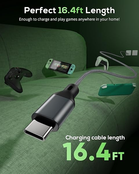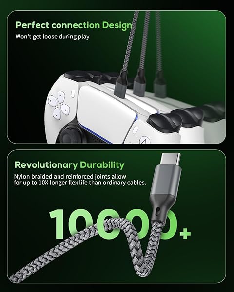 - 16.4FT Charger Charging Cable for PS5/ PS5 Pro/Xbox Series X/S Controller/for Switch Pro, Replacement USB Charging Cord Nylon Braided Type-C Ports Accessories for PS5/for Xbox Series X, Grey with reliable performance and quality- Compatible Model: Compatible with Playstation 5/ Playstation 5 Pro/Compatible with Xbox Series X/S controller /Compatible with Nintendo Switch and most kinds of USB Type C devices. Coming with 1 pack cable. If the cable can't charge after connecting the c