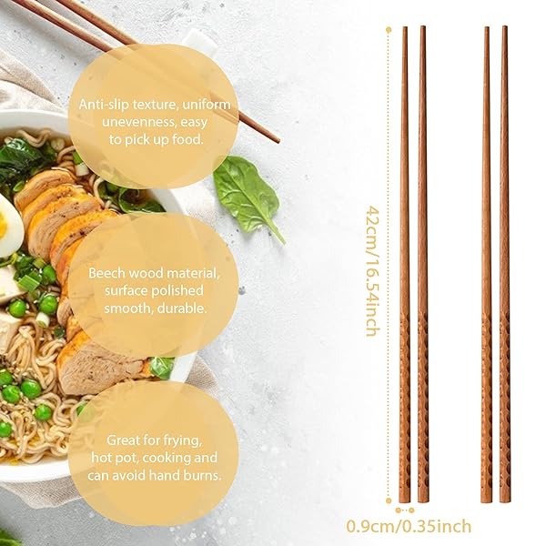 * 16.5 Inches Cooking Chopsticks, 2 Pairs Wooden Long Chop Sticks Reusable for Noodles Frying Hotpot, Japanese Extra Long Anti-Slip Chopsticks: beech wood: the chopsticks are made of beech wood with unique texture and smooth surface * Extended Size: 16.5 "chopsticks to avoid burning your hands with hot oil or steam when cooking * Anti-slip: Anti-slip texture * Uniform unevenness * Easy to pick up food