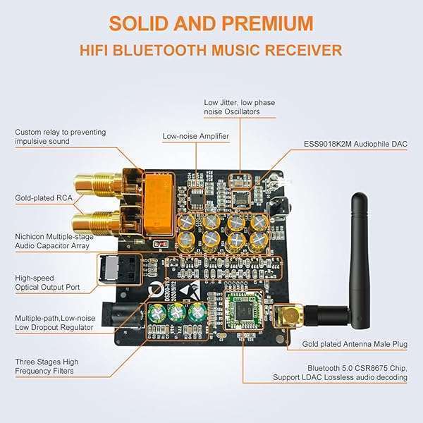 - 1Mii HiFi Bluetooth 5.3 Music Receiver for Home Stereo with LDAC, Bluetooth Audio Adapter with Audiophile DAC aptX HD, RCA Optical Output for AV Receiver or Stereo Amplifier - DS200Pro provides rel...- Rebirth Your Home StereoDS200 Pro is a bluetooth receiver for home stereo supports LDAC, which can streams high quality music from cellphone, pc or any other music player with Bluetooth to any of y...