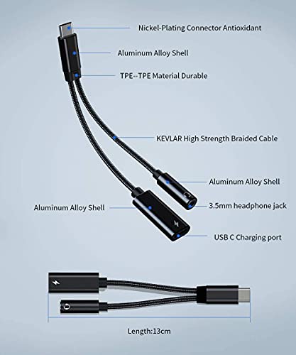 * 2 in 1 USB C to 3.5mm Headphone and Charger Adapter, USB C to AUX Mic Jack with PD 60W Fast Charging for Stereo, Earphones, Compatible with Samsung Galaxy S25/S24/S23/S22+, Google Pixel 8/7: 2 in 1 adapter: splits your usb-c port into a pd-compatible usb-c port and a 3.5mm audio jack * Allowing you to listen to music * Play games * Calling or watch videos while fast-charging your device * NOTE: Does NOT support data transfer