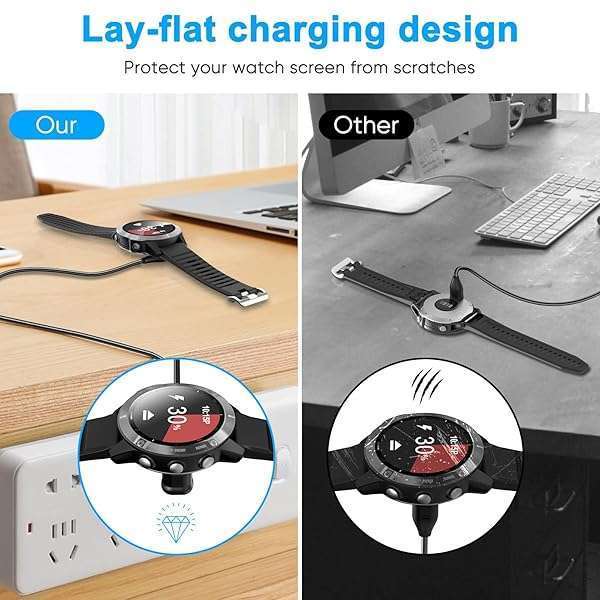 - 2 Pack Charging Cable Charger for Garmin Watch Fenix 7 7S 7X 6 6S 6X 5 5S, Forerunner 245 945, Instinct 2 2S, Vivoactive 4 4S 3, Vivosmart 5, 3.3FT/1m Upgraded Lay-Flat Charging Cord for Garmin Wat...- Upgraded Lay-flat Charging Cable for Garmin--- Our upgraded charging cable for Garmin smartwatch adopts a L-shaped charging head design, which makes the horizontal charging of the watch more stable...