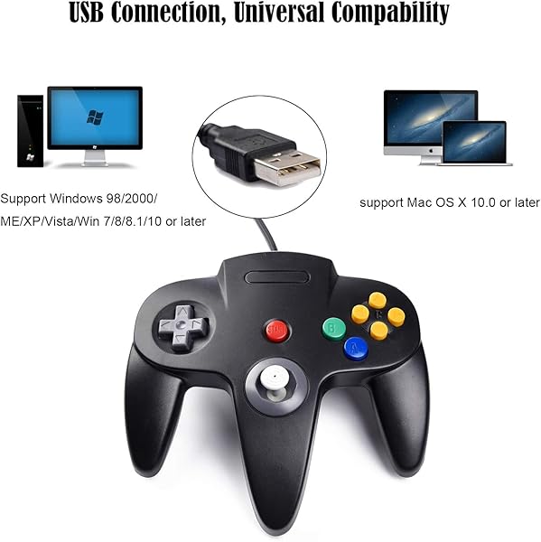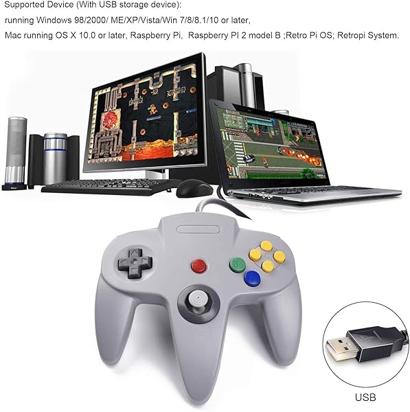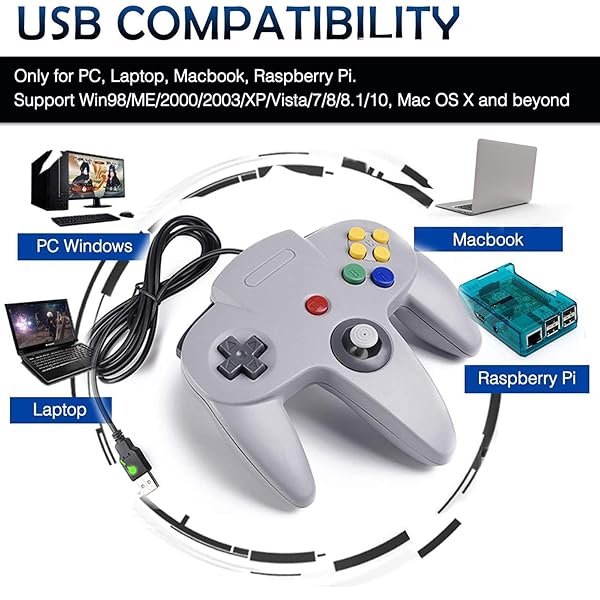 - 2 Pack USB Wired N64 Controller, miadore Classic N64 PC Gamepad Joystick Controller for Windows PC MAC Linux Raspberry Pi 3 (Black/Gray) with reliable performance and quality- Use the generic standard USB port, if your program or application accepts USB controller input, it can be used natively without drivers or patches, JUST PLUG AND PLAY!- Supported Operating system: Windows 98, ME, Vista, 2000, 2003, XP, 7, 8, 8.1, 10; Linux UBUNTU, Linux Mint, Android Linux (via an USB