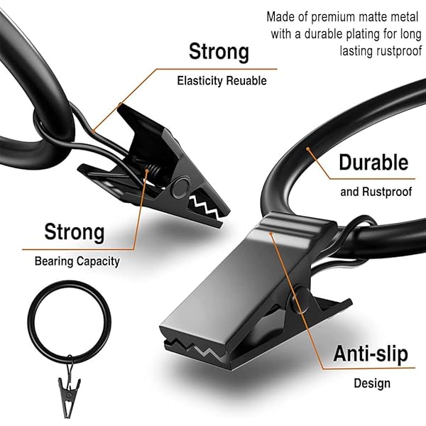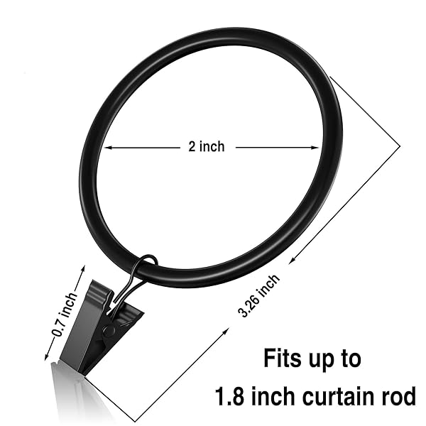 - Lansian 20Pack Curtain Rings with Clips, Drapery Clips for Curtain, Drapery Rings with Clips for Hanging Drapery Drapes Bows, 2 inch Interior Diameter, Fits up to 1.8in Curtain Rod, Vintage Black offers reliable performance and quality- DIMENSIONS -Inner diameter 5.08cm / 2inch. External diameter: 58.4mm / 2.3inch. Fits up to 47.7mm / 1.88inch rod