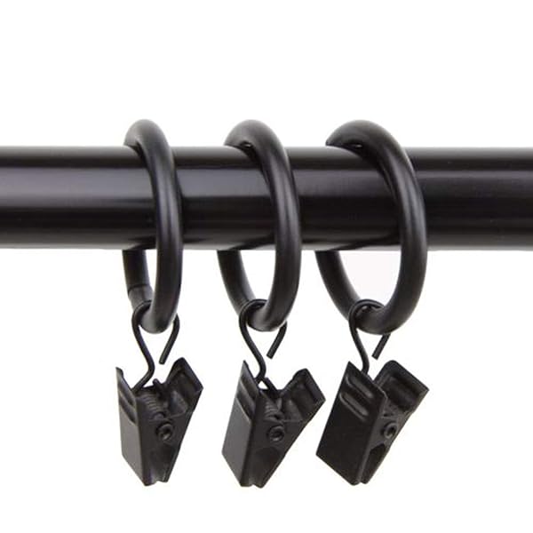 "20-Pack Vintage Black Curtain Rings with Clips - Perfect for Drapery & Bows, Fits 1" Rods, 2" Interior Diameter"