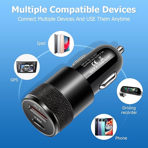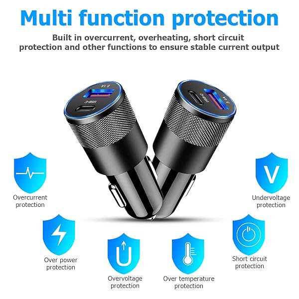 - 2Pack USB C Car Fast Charger, PD 38W 3.1A 2 Port Auto Quick Charger Adapter, Aluminum Metal Body Vehicle Fast Charging, Car Interior Accessories Fits for iPhone, Samsung Galaxy, and More with reliable performance and quality- Dual USB Port: Equipped with a USB C port and a 3.1A fast charging port, the fast car charger is capable of rapidly charging 2 devices at the same time, reaching 50% in just 30 minutes. The total output power of 38W is 3 times faster than the usual cigarette