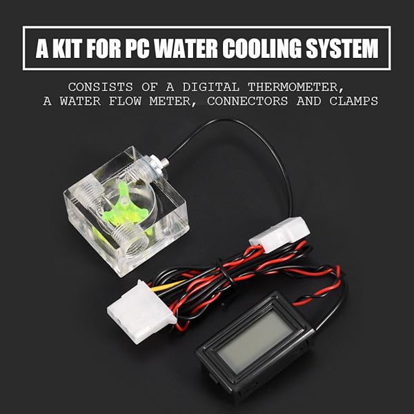 * [Kit] 3 Way Meter PC Digital Thermometer Indicator G1/4 Water Cooling System Kit with 4 pin Power Supply: a kit for pc water cooling system * Consists of a digital thermometer * A water meter * Connectors and clamps * 3 way water meter helps you to monitor the speed and working states of the water