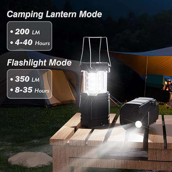 * 3000mAh Large Capacity Hand Crank Solar Camping Lantern, Portable Ultra Bright LED Torch, 23-26 Hours Running Time, USB Charger, Electronic Lantern for Outdoor: & 8 hour play time the main light includes 12 led bulbs carrying 360 of 200lm,equivalent to 2.4w bulb,which can light up for 4 hours of strong light and up to 40 hours of low light.the 3w with 350lm can light up for 8 hours of strong light and up to 35 hours of low light with enough battery capacity (batteries pre-installed in the