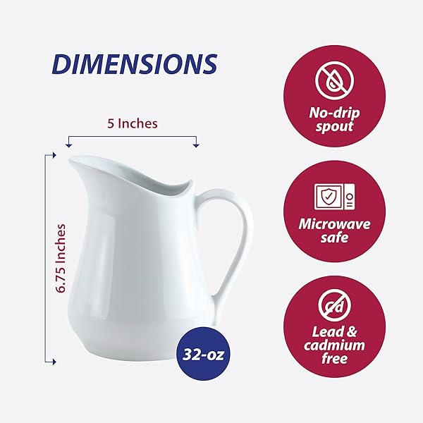 - HIC Kitchen Creamer Pitcher With Handle, Fine Porcelain, 32-Ounce Capacity, For Coffee, Tea, Dressings, Gravies, Sauces provides reliable performance and quality- HIC Kitchen Creamer Pitcher: Fine porcelain creamer with extra-large 32-ounce capacity; perfect for serving cream and milk with coffee or tea, salad dressings, warm syrups, au jus, gravies, and sau...