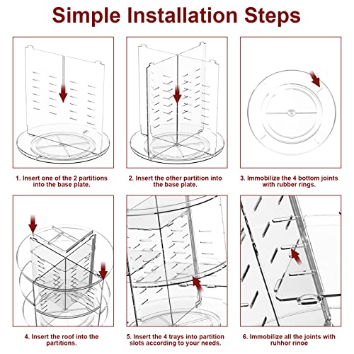 * Makeup Organizer 360 Rotating Cosmetic Organizer DIY Adjustable Makeup Carousel Spinning Holder Rack, Large Capacity Cosmetic Storage Box Makeup Brushes Organizer for Vanity Countertop (Clear): 360 degree smooth rotationthe reinforced base of the makeup storage box can rotate smoothly and silently * Helping you to easily access all the cosmetics * Large CapacityLarge capacity makeup organizer helps you organize all your messy cosmetics * Saving space on your dresser * Plenty of space for