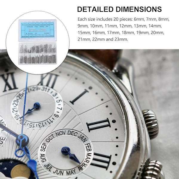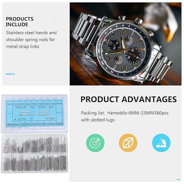 - Hemobllo 360pcs Stainless Steel Watch Band Link Cotter Pins Spring Bars Tools in 18 Different Sizes - 6mm-23mm (Silver) offers reliable performance and quality- 360 pieces of the stainless steel watch band link pins in 18 different sizes in one set will be sold together- Pin color: mainly silver. Material: durable stainless steel