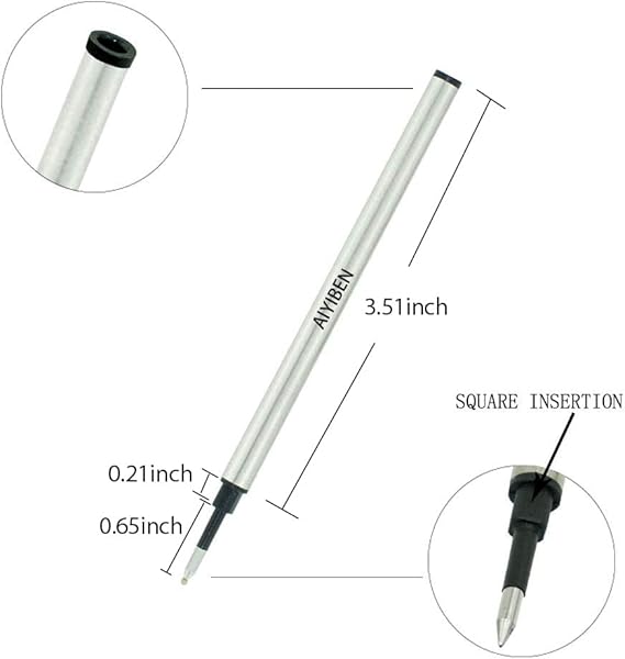 * 4.37 inch Rollerball Pen Refills, Roller Ball Fine Point 0.5mm, Black Ink Refill Pack of Replaceable Pen Refills Medium Point (6 Pack): good quality metal refills: * The high-quality ink provides consistent writing smoothness * The ink dries quickly with a constant ink flow * And does not ooze * It is suitable for many rollerball pen refills