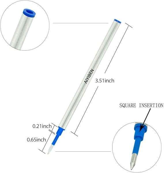 * 4.37 inch Rollerball Pen Refills, Roller Ball Fine Point 0.5mm, Blue Ink Refill Pack of Replaceable Pen Refills Medium Point (6 Pack): good quality metal refills: * The high-quality ink provides consistent writing smoothness * The ink dries quickly with a constant ink flow * And does not ooze * It is suitable for many rollerball pen refills