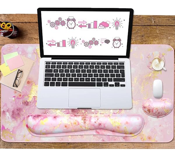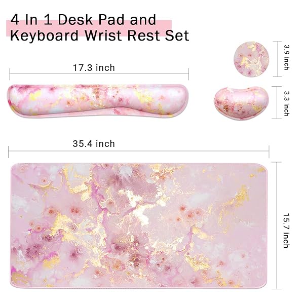 - 4-in-1 Large Gaming Mouse Pad, Keyboard Wrist Rest Pad & Wrist Support Mousepad Set, Extended Desk Pad Waterproof Desk Mat for Home Office Study Game-Pink Gold Marble with reliable performance and quality- 4-in-1 Mouse Pad Set: Large desk pad:35.415.75 inch,Keyboard wrist rest measures 17.32" x 3.15" x 0.98",Mouse wrist rest measures 5.4" x 3.15" x 0.98",Cup coaster(3.9" x 3.9"). This desk pad for keyboard and mouse, is large enough to fit your mouse, gaming keyboard, and other de
