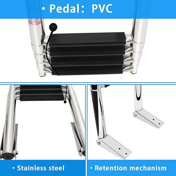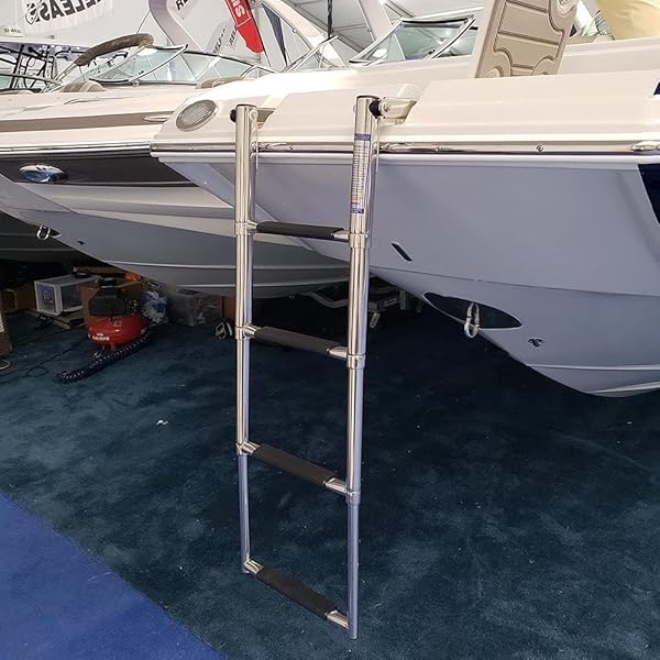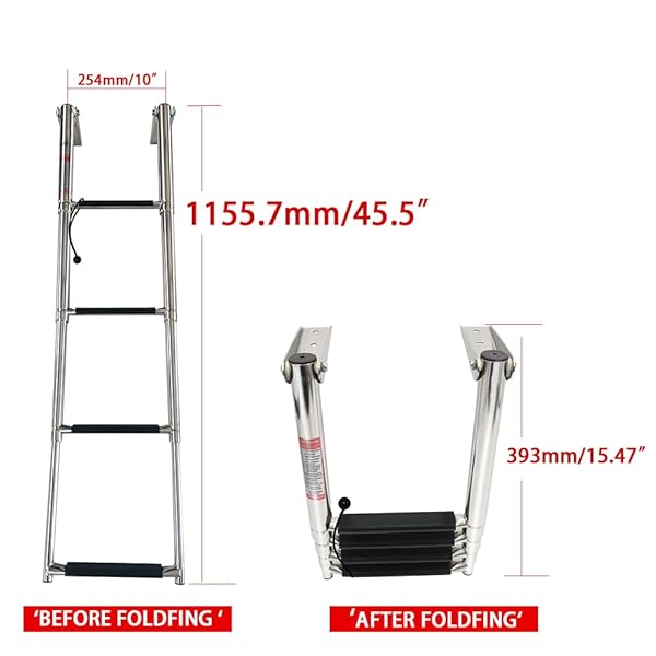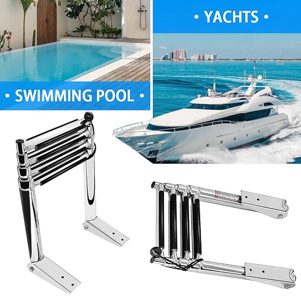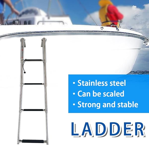 - 4 Step Telescoping Boat Ladder Folding Pontoon Dock Ladder, Stainless Steel Swimming Stepladder for Boat Ship Yacht Marine, Rated to 400 Pounds offers reliable performance and quality- MaterialStainless steel dock ladder, durable construction- DimensionWidth:10 inch, Length:15.5 inch- Telescopic DesignCompact and efficient- Folding DesignHinged bracket allows for the ladder to fold over platform for easy fitting