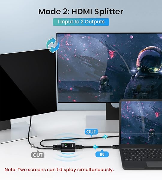 - HDMI Switch Splitter 4K@60hz, Aluminum HDMI 2.0 Switcher 2 in 1 Out, HDMI Splitter 1 in 2 Out, Bi-Directional Switch Support 4K 3D HDR for Xbox PS5/4/3 Blu-Ray Player Fire Stick Roku HDTV provides ...- Bi-Directional HDMI SWITCH Solid Aluminum Alloy construction, this durable HDMI bi-directional splitter help you connect two HDMI sources to one HDMI display(2x1), or connect one HDMI source to tog...