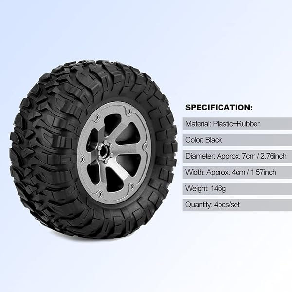 - 4pcs Crawler Tires, 1:16 RC Model Rubber Tyres Remote Control Car Wheels RC Vehicle Scale Accessories 1.0 Tires 1/16 Rc Tires 1/16 Rc Tires C24 Upgrades offers reliable performance and quality- DESIGN: These RC Model Car Tyre feature an anti-skid pattern containing multiple sipes for incredible flexing- SHOCKPROOF: Made of high-quality rubber, which can providing excellent shock