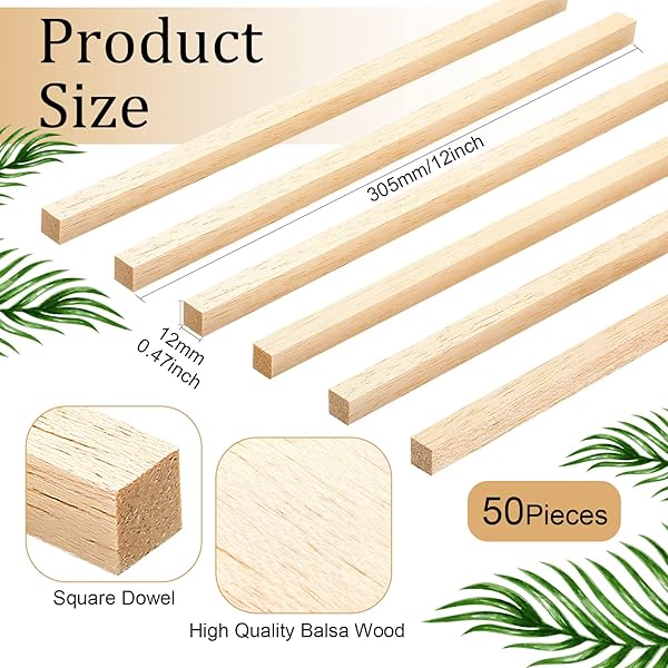 - 50 Pieces Balsa Wood Sticks 1/2 x 1/2 x 12 Inch Hardwood Square Wooden Dowels Unfinished Wood Sticks for Craft DIY Supplies DIY Molding Projects Making offers reliable performance and quality