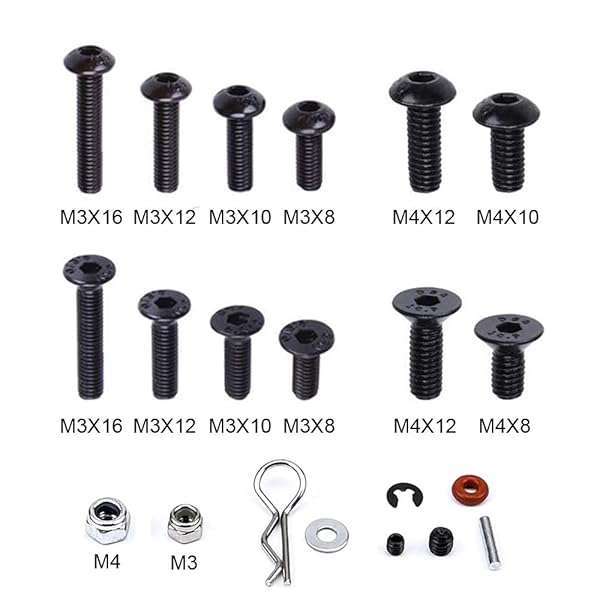 * AONTOKY 500Pcs RC Screw Kit Repair Tool M3 M4 Hex Screws Nut Shell Buckle Hardware Fastener for 1/8 1/10 1/12 Scale Cars Truck Crawler DIY Parts: material: high quality metal * Various Size Screws ideal for RC Model car * Boat * Airplane * Compatibility: Fit for 1/8 1/10 Scale RC Model Cars Crawler Truck