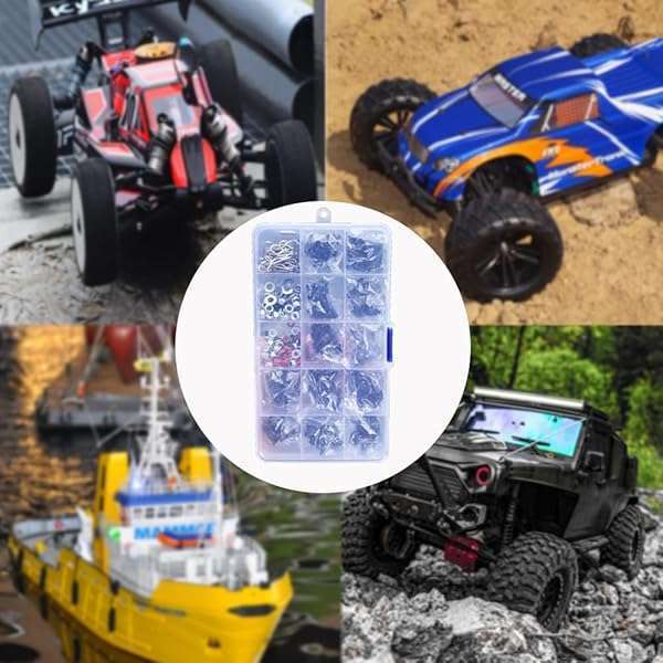 500Pcs AONTOKY RC Screw Kit - M3 M4 Hex Screws & Nuts for 1/8 1/10 1/12 Scale Cars & Trucks - DIY Repair Tool Set