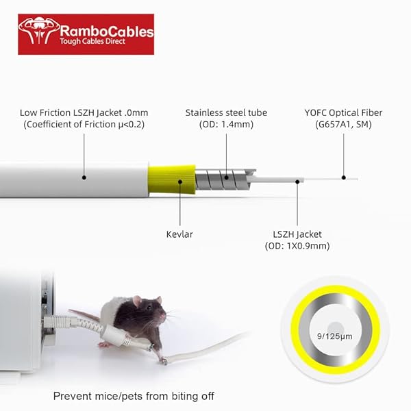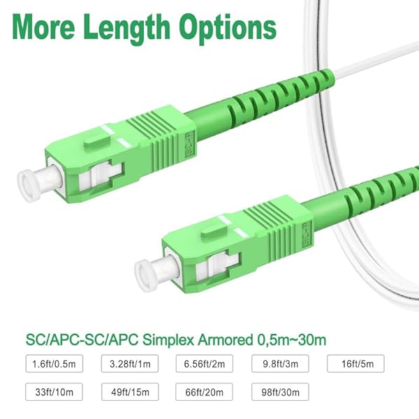 - (50ft/15m) SC/APC to SC/APC Fiber Optic Internet Cable, Armored Fiber Patch Cable, OS2 Single Mode Fiber Optical Patch Cord, Simplex - 9/125um, LSZH White with reliable performance and quality- [Tough and Durable]: SC/APC white armored fiber optic cable offers superior toughness and durability that sets it apart from other cables on the market. With a crush resistance of 1,000N/100mm and a robust armor layer that provides protection against environmental factors, including pet or