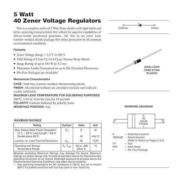 - 50PCS 1N5349B 1N5349 Power Zener Diode 5W 12V T-18 (CASE17-02) Axial Diodes 5 Watt 12 Volt offers reliable performance and quality- Product TypeZener Diode- P/N: 1N5349B- Lead-Free / RoHS Compliant Electronics Component / DO-15- V(z): 12V ; V(r): 9.1V ; P: 5W