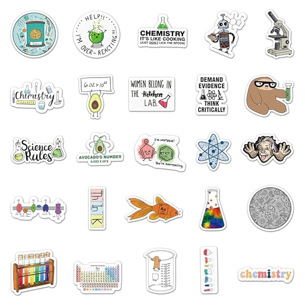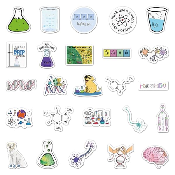 - 50PCS Pack Chemical Laboratory Equations Chemistry Stickers for DIY Laptops Stationery Phone Case Skateboard Gifts Decals for Kids Birthday Party offers reliable performance and quality- Chemistry Theme Stickers: Each pack contains 50 pieces stickers,each sticker about 2.16-3.35 inch size- High Quality: These stickers are made of high quality PVC waterproof material. The patterns are more precise and clear