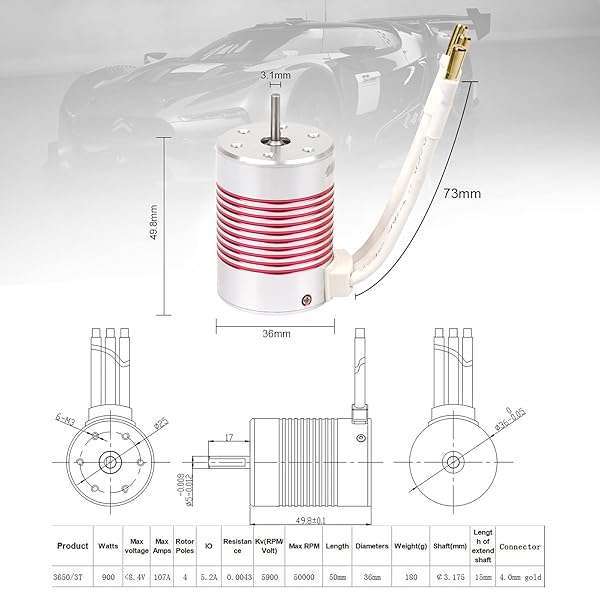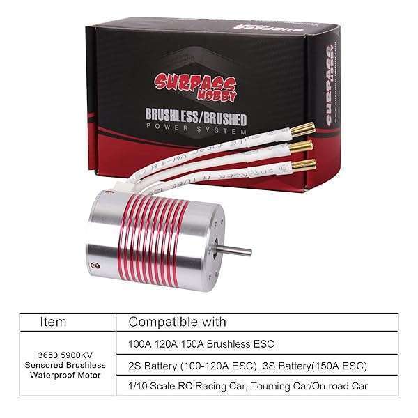 * 540 Brushless Motor 1/10 3650 5900KV 3.175mm Shaft Waterproof Brushless Motor for 1:10 Scale RC On-Road Car: 540 brushless motor 1/10 3650 5900kv 3.175mm shaft waterproof brushless motor for 1:10 scale rc car * Features: * Specially designed for 1/10 rc racing car * Waterproof * Suitable for various condition races