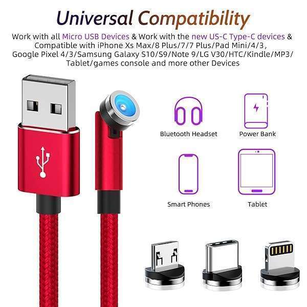 - 540 Rotating Magnetic Charging Cable (Red 4-Pack 3/3/6/6ft) 3 in 1 USB C Magnetic Phone Charger Cable 2.4A Fast Charge Cord for iPhone Samsung Moto Android Tablet All Micro USB/Type C Device provid...- [540 Free Rotation] - Anmone 540 Degree Rotate Usb Magnetic Charging Cable Can Be Rotated 360 Degrees And 180 Degrees, From Straight Charging To Right Angle Shape Charging To Make Charging More Con...