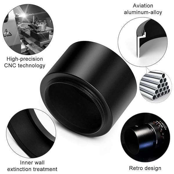 - 58mm Tele Metal Screw-in Lens Hood Sunshade with Centre Pinch Lens Cap for Canon Nikon Sony Pentax Olympus Fuji Sumsung Leica Camera + Cleaning Cloth offers reliable performance and quality- [Material] :This metal Tele lens hood is constructed of solid lightweight aluminum metal with smooth black surface- [Function] :Screw-in Tele lens hood can prevent lens flare caused by extraneous light and protects against unexpected bumps or shock,no vignetting