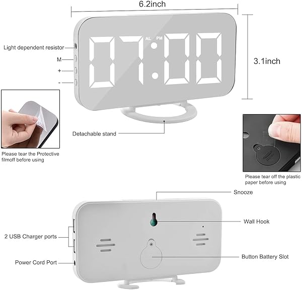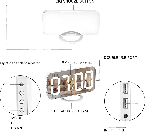- Sukeen Digital Alarm Clock,6" Large LED Display with Dual USB Charger Ports | Auto Dimmer Mode | Easy Snooze Function, Modern Mirror Desk Wall Clock for Bedroom Home Office for All People (White) offers reliable performance and quality- Unique Mirror Large Display Design--6.1" inch ultra-large LED display, you can see the time clearly even at a glance within 30 feet of your bedroom,and the display is also can be used as a mirror in daily use,simple and interesting